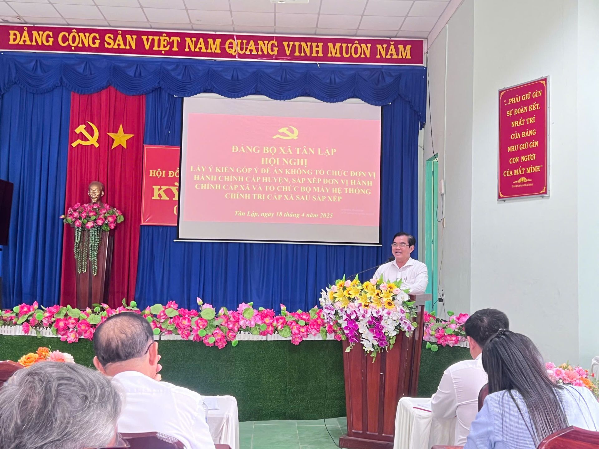 Sáng ngày 18/4/2025, Đảng ủy xã Tân Lập Tổ chức hội nghị lấy ý kiến phương án sắp xếp, sáp nhập, tổ chức lại đơn vị hành chính cấp xã đối với các đồng chí Nguyên Ủy viên Ban Thường vụ, Ban Chấp hành Đảng ủy qua các thời kỳ, cán bộ hưu trí của xã, Trưởng, Phó UBMTTQ và các ngành, đoàn thể xã.