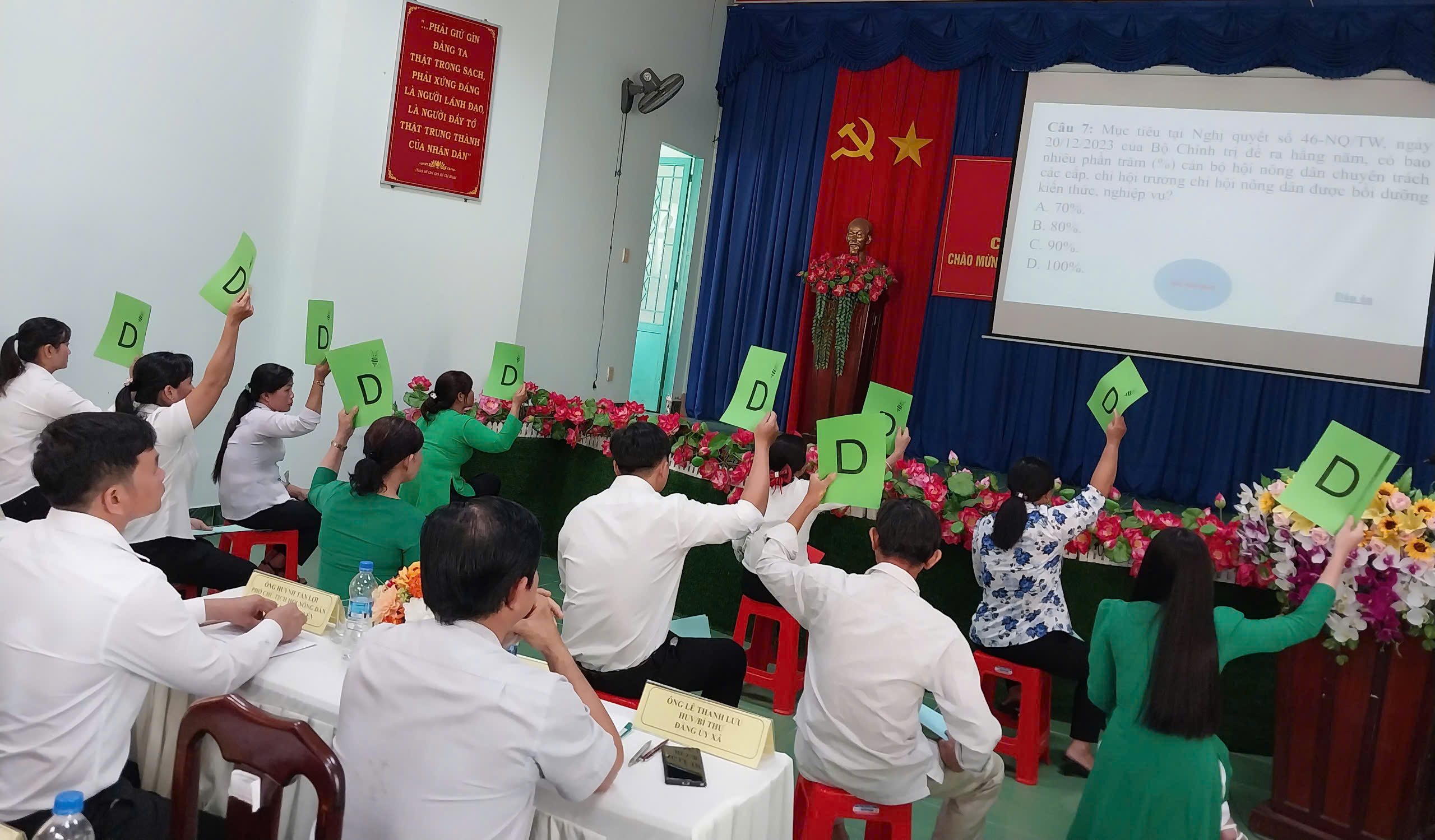 Vào ngày 28 tháng 9 năm 2024 Hội Nông dân đã Tổ chức Hội thi “Cán bộ Chi hội giỏi” năm 2024 với chủ đề “Đổi mới, sáng tạo thực hiện Nghị quyết Đại hội đại biểu Hội Nông dân các cấp nhiệm kỳ 2023-2028” thiết thực chào mừng 94 năm Ngày thành lập Hội Nông dân Việt Nam (14/10/1930-14/10/2024) tại Hội trường UBND xã. Về dự Hội thi "Cán bộ Chi Hội giỏi" có: Về phía Hội Nông dân huyện Đ/c Huỳnh Tấn Lợi - PCT-HND huyện; Đ/c Võ Phi Anh Toàn - UV.BTV - HND huyện. Về phía UBND xã Đ/c Lê Thanh Lưu - HUV/BTĐU xã; Đ/c Phạm Đỗ Trí - ĐUV/CT. HĐND xã; Đ/c Trần Thị Thùy Dung - ĐUV/PCT.HĐND xã; Đ/c Trần Thị Thanh Hương - ĐUV/PCT.UBND xã. Về phía Hội Nông Dân xã Đ/c Hoàng Thị Thu Hương - ĐUV/CT.HND xã; Đ/c Phạm Xuân Ánh - PCT.HND xã cùng các Đ/c trong Ban Tổ chức, Ban giám Khảo và BTV-BCH Hội Nông dân xã.