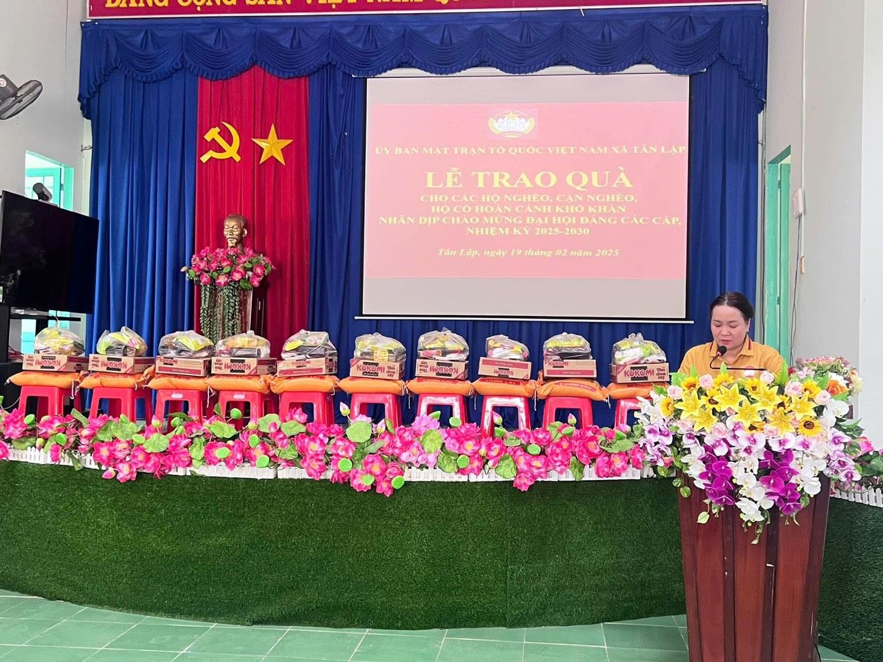 Chiều ngày 19/02/2025, Nhằm thiết thực chào mừng Đại hội Đảng các cấp, tiến tới Đại hội đại biểu toàn quốc lần thứ XIV của Đảng, tại Hội trường UBND xã Tân Lập, Ủy ban MTTQ Việt Nam xã phối hợp với Thầy Lê Mộng Bảo tổ chức trao quà cho các hộ nghèo, hộ cận nghèo, hộ thoát nghèo, hộ có hoàn cảnh khó khăn trên địa bàn xã và hưởng ứng cuộc vận động “Người Việt Nam ưu tiên dùng hàng Việt Nam” năm 2025.