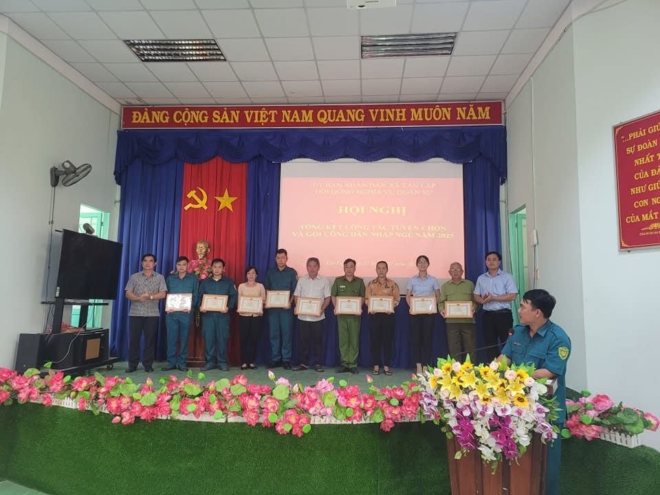 Hội đồng NVQS xã đã trao giấy khen cho 09 tập thể và 06 cá nhân có thành tích xuất sắc trong công tác tác tuyển chọn, gọi công dân nhập ngũ năm 2025 qua đó đã biểu dương 10 gia đình tiêu biểu có con em lên đường nhập ngũ năm 2025 và đề nghị biểu dương 01 gia đình tiêu biểu khen thưởng tại Hội nghị tổng kết công tác tuyển quân cấp huyện năm 2025. Trong Hội nghị Hội đồng NVQS xã đã biểu dương 01 gia đình tiêu biểu có con em là nữ DQTV tham gia diễu binh, diễu hành Lễ kỷ niệm 50 năm Ngày giải phóng miền Nam (30/4/1975-30/4/2025). Qua đó nhầm cổ vũ động viên tinh thần các đồng chí có thành tích tốt cũng như góp phần vận động tuyên truyền các gia đình có con em trong độ tuổi nhập ngũ tình nguyện lên đường thực hiện nghĩa vụ quân sự khi có lệnh./.